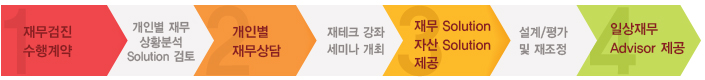 - ㄴ) 전담 재무전문가가 주기적으로 개인의 재무상황에 대해 듣고 분석하여 조언을 제공합니다. (월 1회 면담)